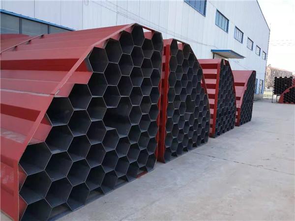 ?。?)蜂窩式電捕焦油器。蜂窩式與管式的結(jié)構(gòu)相同,是將通道截面由圓形改為正六邊形。兩個相鄰正六邊形共用一條邊,即靠中間的正六邊形的六條邊均被包圍它的六個正六邊形所共用。用2~3mm的鋼板制成的蜂窩板即可滿足工藝和機械強度的要求。由于蜂窩式電捕焦油器具有結(jié)構(gòu)緊湊合理、沒有電場空穴、有效空間利用率高、重量輕、耗鋼材少和捕集特性好等優(yōu)點,但存在制造難度大,在運輸安裝過程中易產(chǎn)生誤差等缺點。隨著設(shè)備制造工藝水平的提高,蜂窩式電捕焦油器的優(yōu)點會越來越受到人們的重視,必將逐步取代同心圓式和管式電捕焦油器。鈺泰環(huán)保生產(chǎn)蜂窩式電捕焦油器